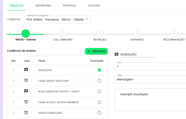 Utilize os modelos prontos de funil e atividades para vendas, pós vendas, contratação e treinamento de vendedores.